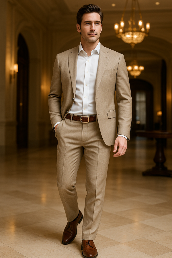 | 正式商務 | 深藍西裝 + 白襯衫 + 棕色皮鞋 → 穩重專業 |